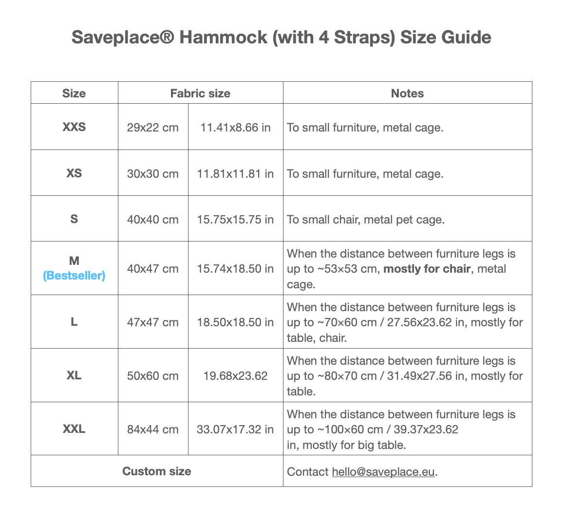 Selon le modèle (convient à la majorité des hamacs pour animaux).